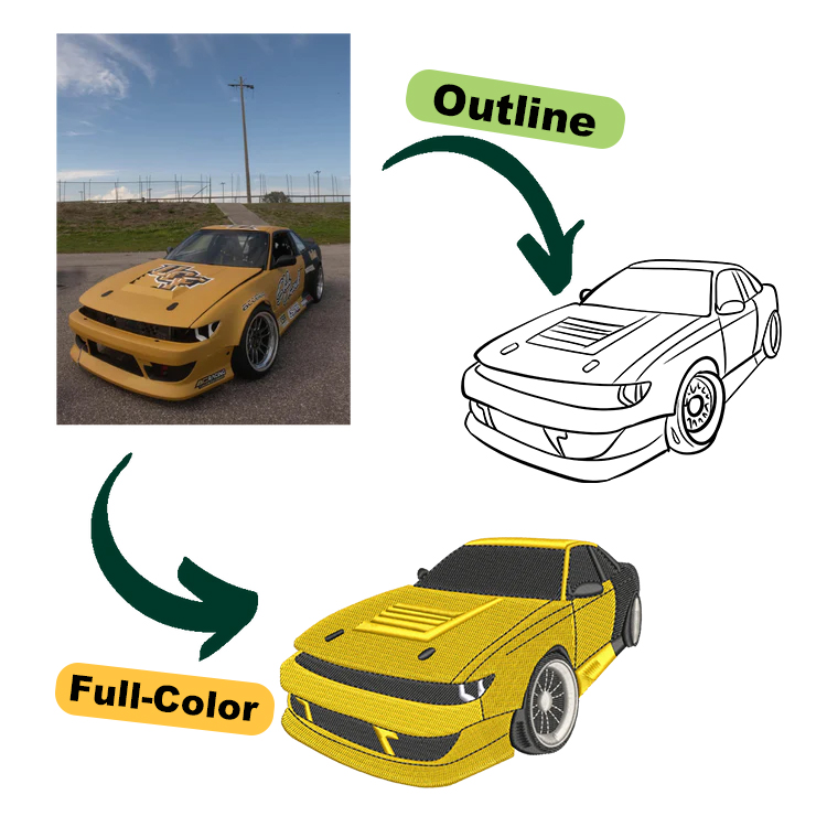 Our skilled artists transform your car's photo into a beautiful embroidery design.