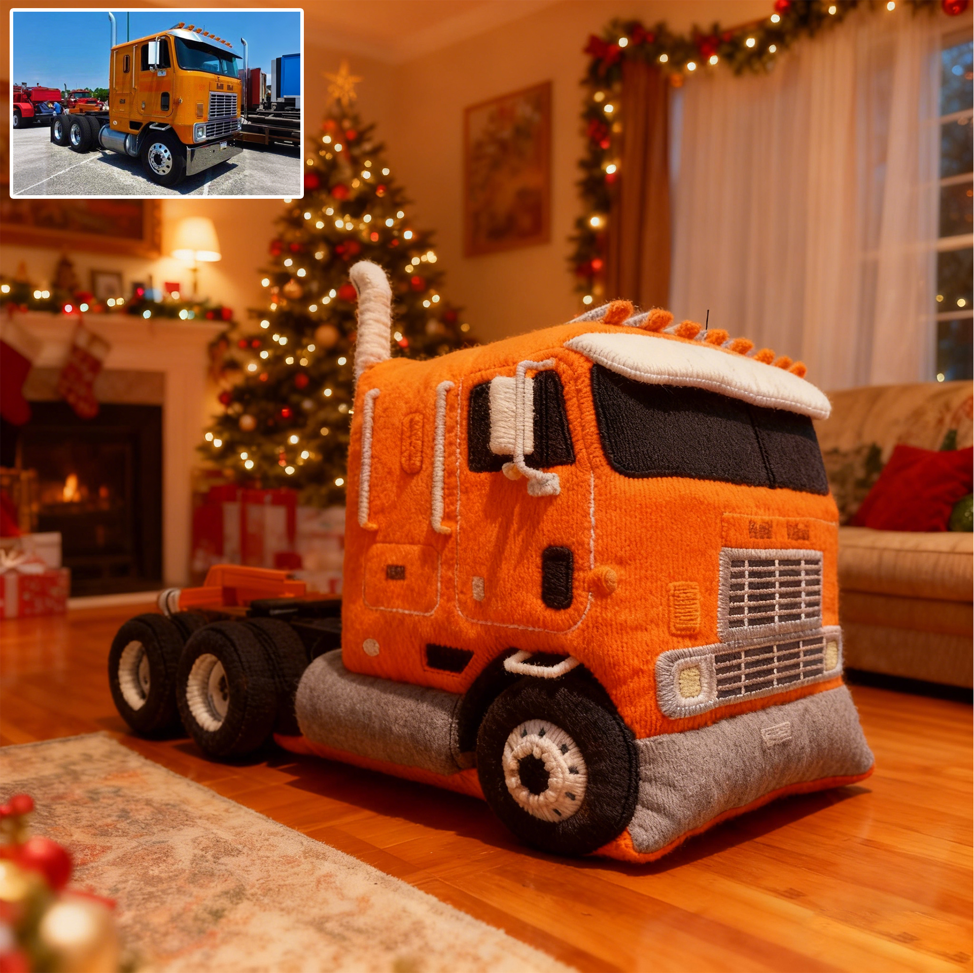 For the men who live on the road, the ones who know every sound of their engine and every mile of their route—this is your truck, turned into a badass custom pillow.