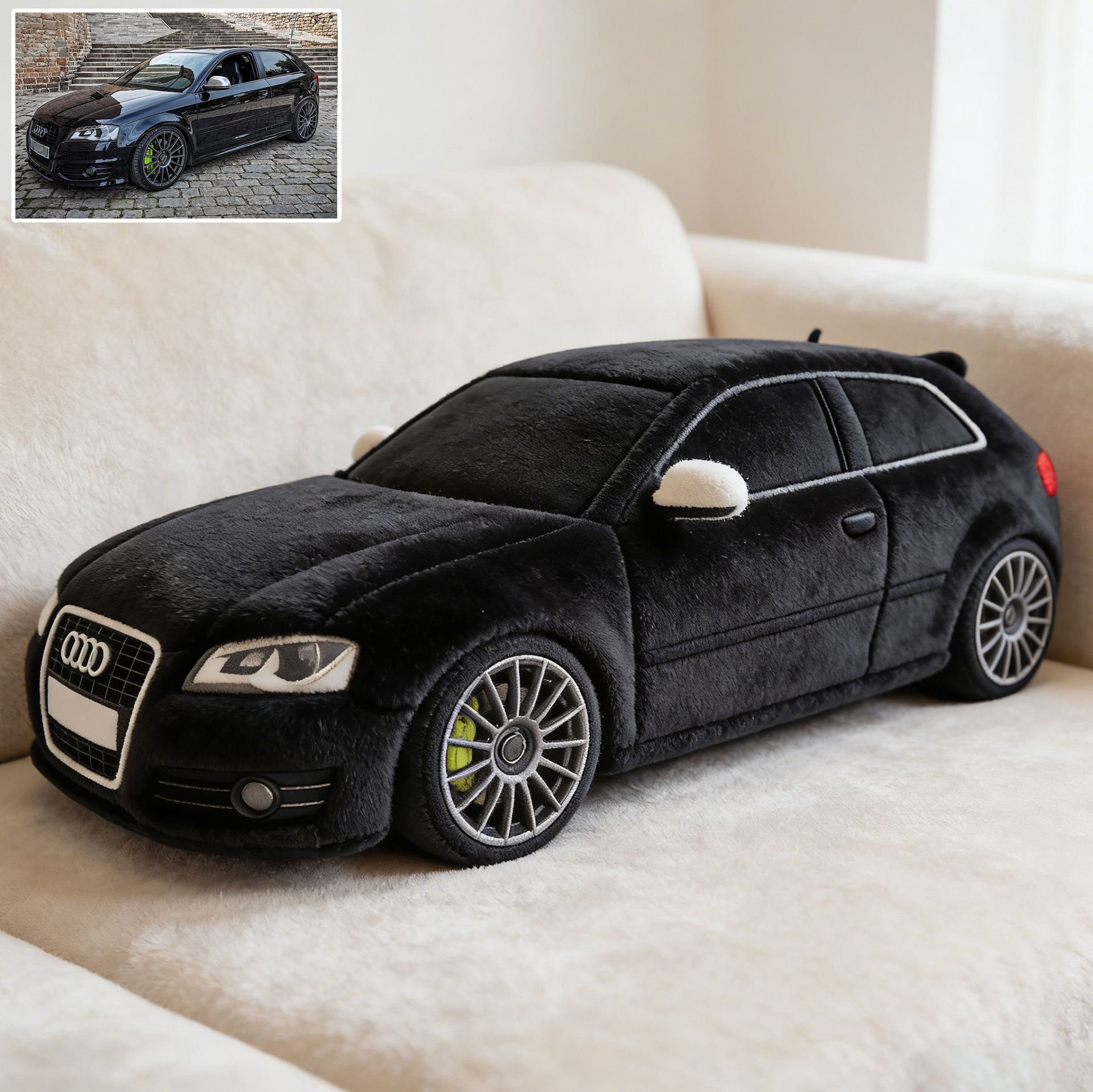 We transform your car photo into a high-definition pillow that captures every detail — curves, stripes, wheels, lights, and attitude.