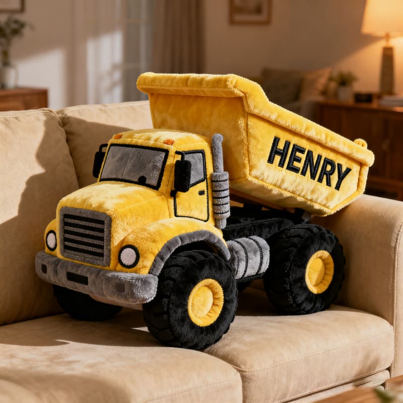 Make playtime even more fun with our Personalized Dump Truck Plush Pillow! This soft, oversized plush features a bold dump truck design that kids love, and you can customize it with any name. Perfect for bedrooms, playrooms, or gifting to little construction fans.